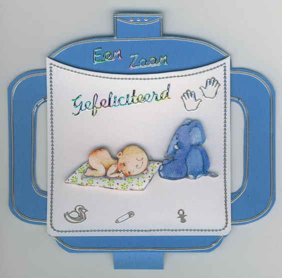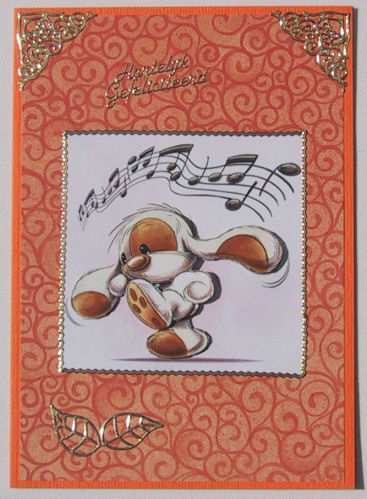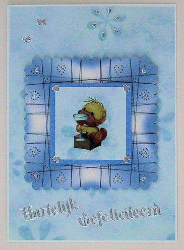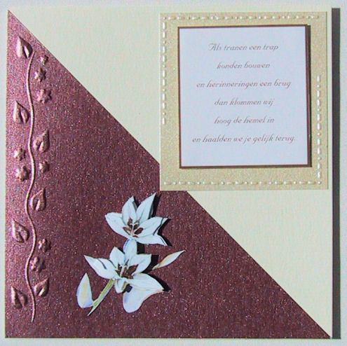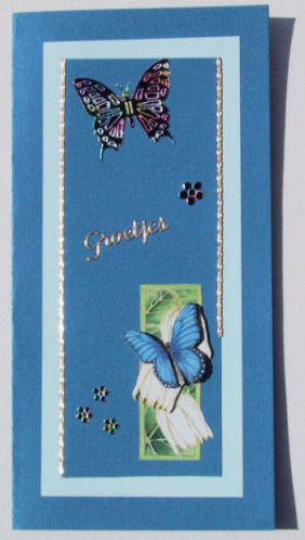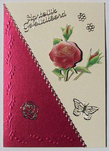 Maak twee gaatjes in de kaart en maak een strikje van lint. |